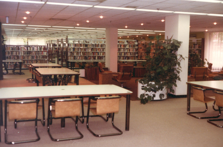 - en-CA Tables in the adult reference area of the main library at 4848 Victoria Avenue