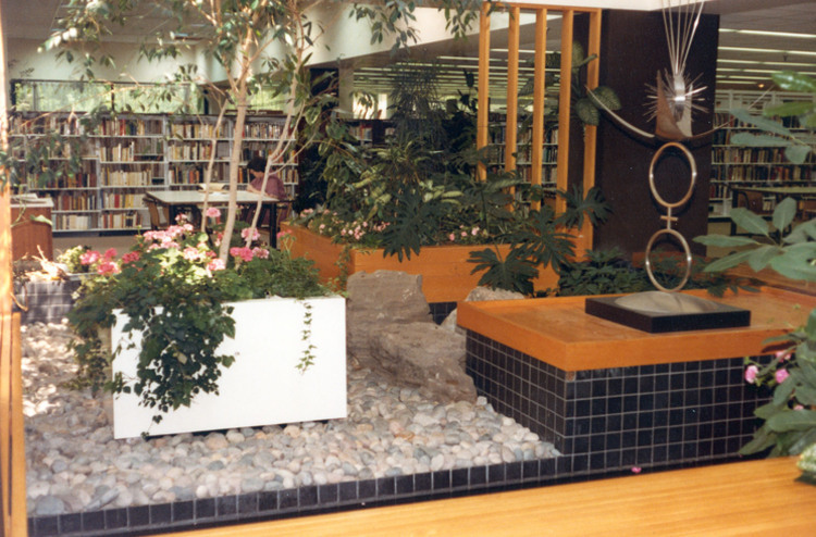- en-CA Interior garden area of the main library at 4848 Victoria Avenue