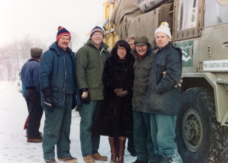 Members of the Cousteau Society at Niagara Falls filming a documentary