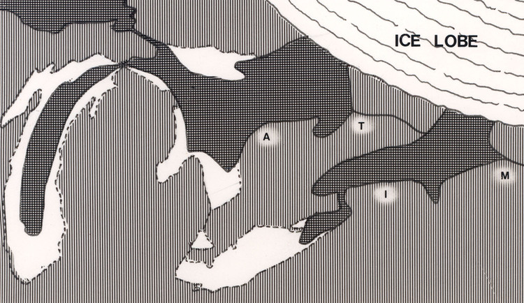 - en-CA The Falls of Niagara had only a fraction of their usual flow during cutting of Old Erie Gorge, Stage II on the map. This period is much the longest in the history of the Falls. A- lake Algonquin; M- Mohawk Valley; T- Trent Valley; I- Lake Iroquois