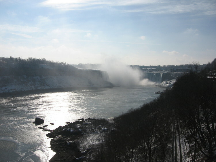 - en-CA The Horseshoe Falls and the lower Niagara River in winter.