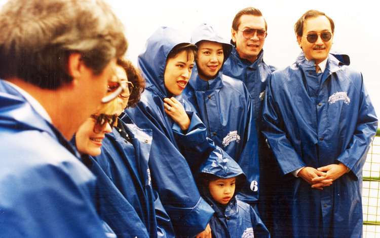 - Princess of Thailand dressed in raincoat on board Maid of the Mist boat.