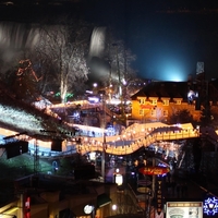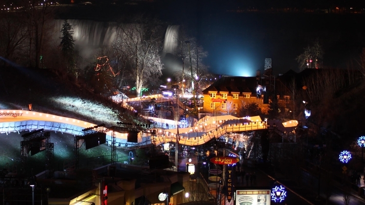 - en-CA The Red Bull Crashed Ice Course illuminated at night. The American Falls can be seen in the background.