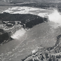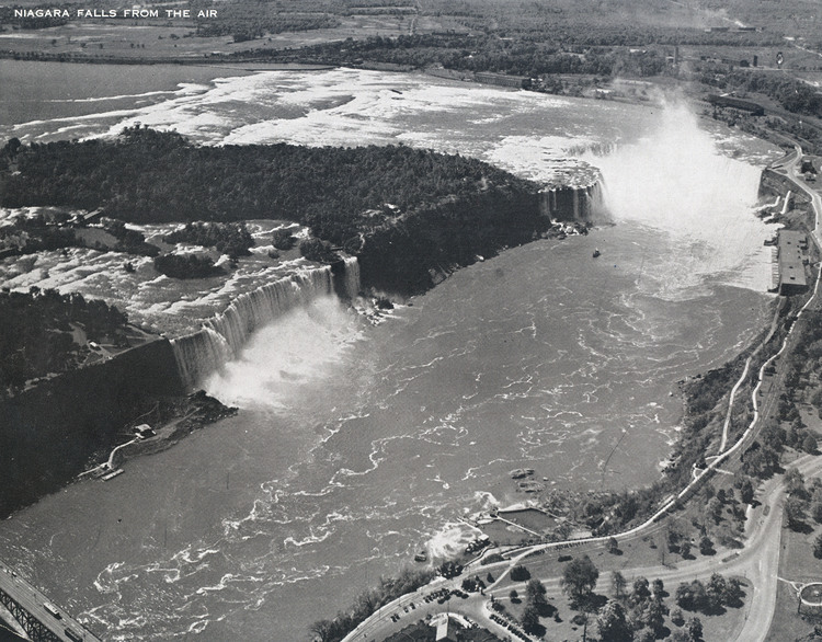 - en-CA Aerial photograph of the American Falls and the Horseshoe Falls.
