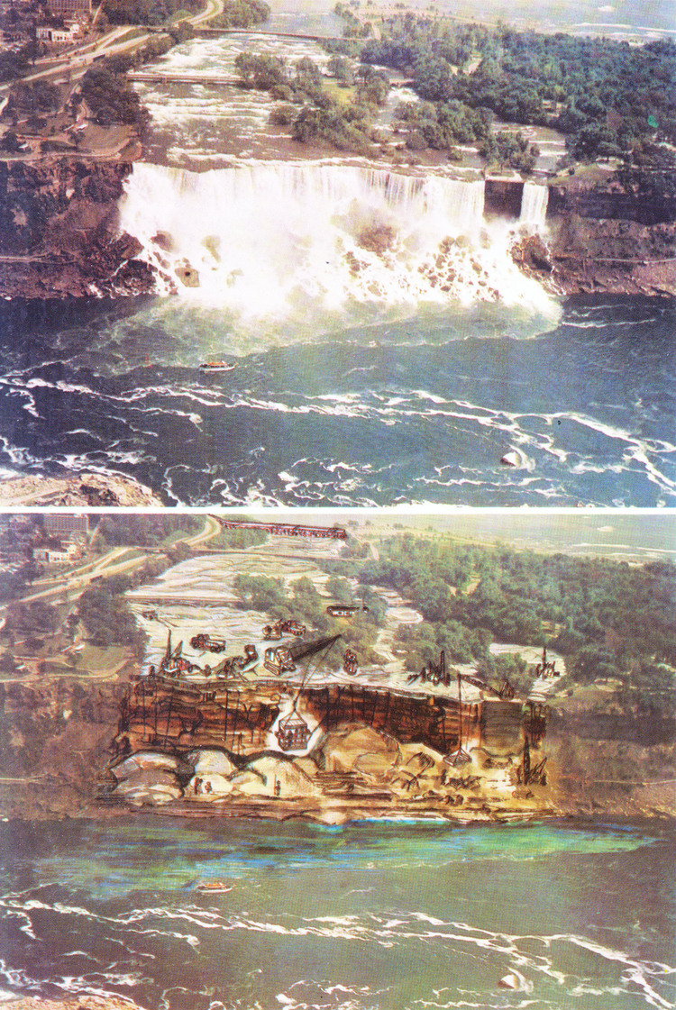 - en-CA The International Joint Commission of the United States & Canada is currently engaged in a study of the American Channel of Niagara Falls. The channel will be dry during the summer and fall of 1969. This study is to determine what measures, if any, would be required to preserve and enhance the scenic beauty of the American Falls. No actual work to clear away talus or reinforce the cliff will be done at this time. Pictured here are the Falls in its natural condition and dewatered.