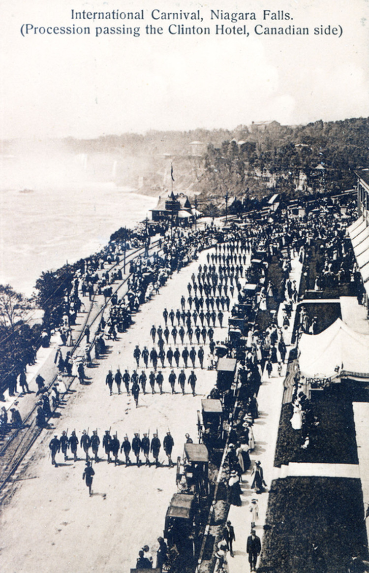 - en-CA Procession passing the Clinton Hotel, Canadian side.