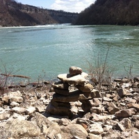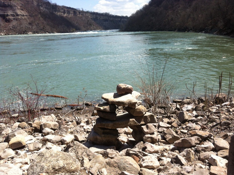 - en-CA An inukshuk standing on the banks on the Niagara River at the Whirlpool Rapids in the Nigara gorge