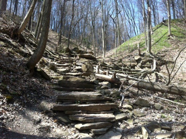 - en-CA Stone pathway leading through some trees in the Niagara gorge