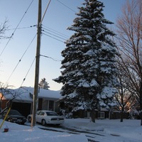 - en-CA Snow-covered spruce tree at 4501 Dovewood Drive