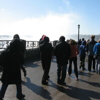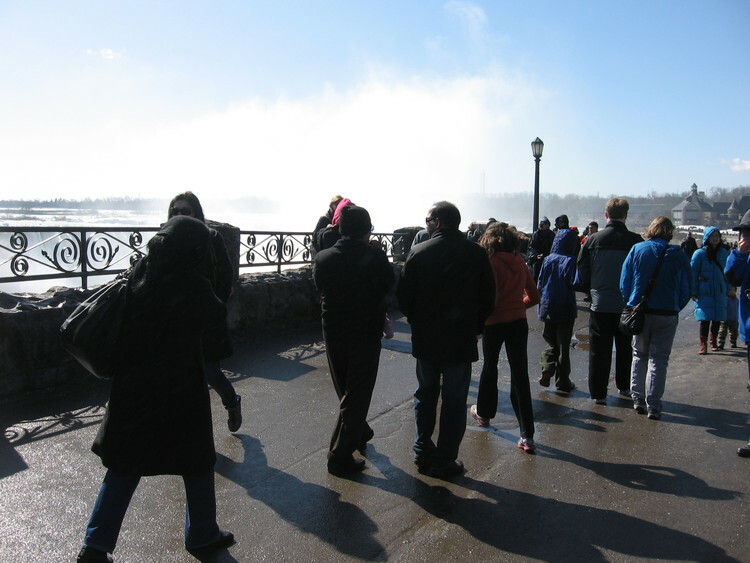 Tourists Walking along parkway near Horseshoe Falls on Easter Weekend