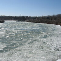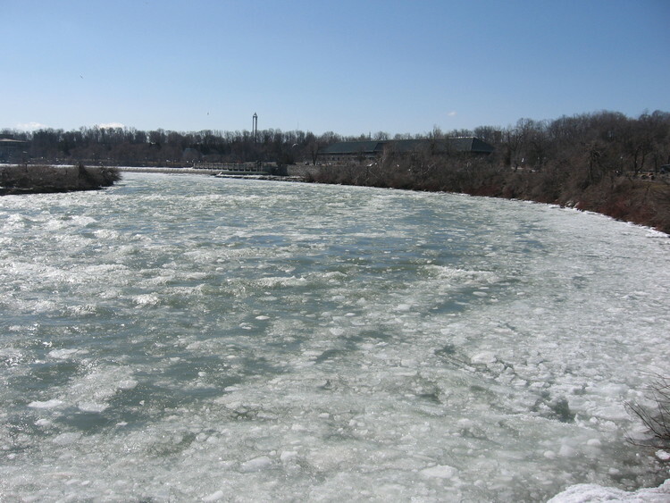 - en-CA Ice in the upper Niagara River above the brink of the Horseshoe Falls. Th Rankine Power Station can be seen in the background.