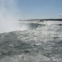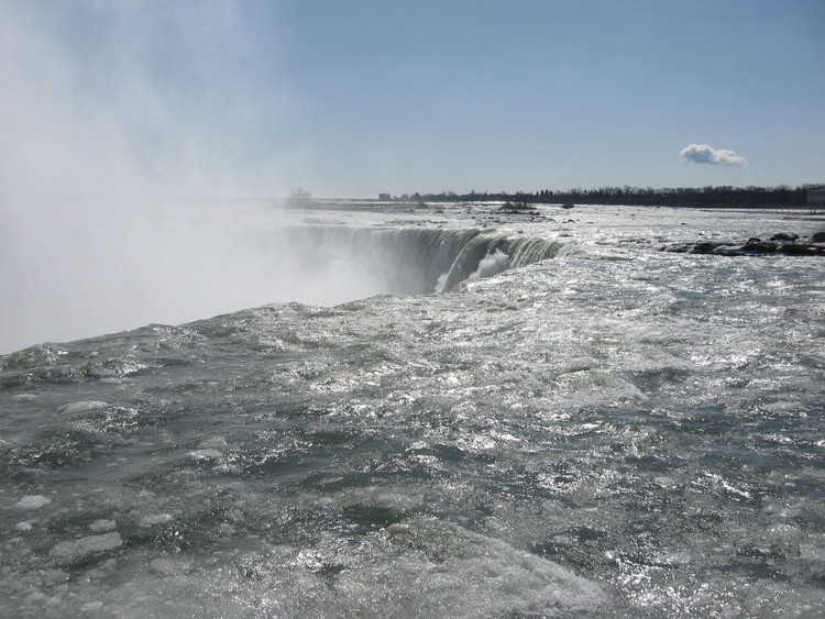 - en-CA Ice in the water at the brink of the Horsehoe Falls