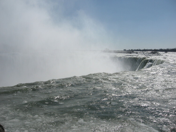 - en-CA Ice in the water at the brink of the Horseshoe Falls.