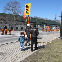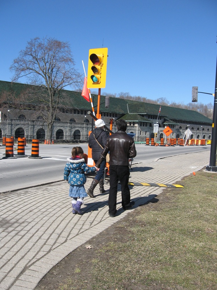 - en-CA Portable, solar-powered traffic signals by the construction on the Niagara Parkway near the Canadian Niagara Power Company Building.