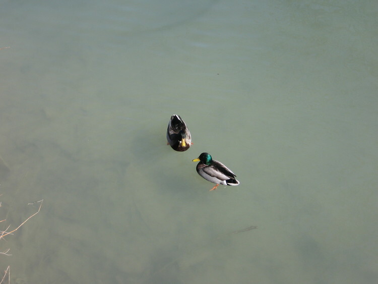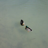 - en-CA Mallard ducks swimming in the water at Dufferin Islands.