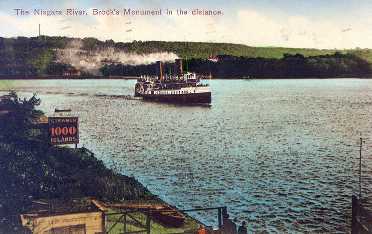 - en-CA Steamer on the Lower Niagara River with Brock's Monument in the background.