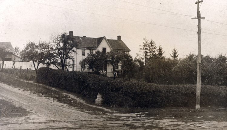 - en-CA Leaving this house, she tramped 20 miles through the woods to warn the British troops of the approach of the American forces, June 23rd, 1813.From a photograph taken in 1910.
