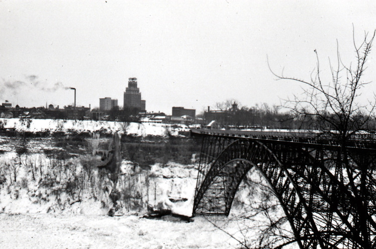- en-CA Falls View Bridge before it collapsed on January 27, 1938. An ice jam, exerting enormous pressure on the abutments of the Falls View Bridge, caused it to collapse onto the ice bridge below.