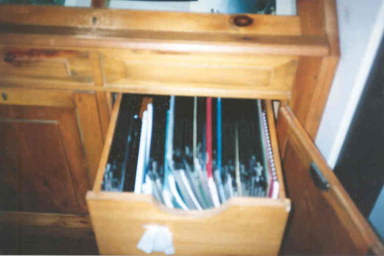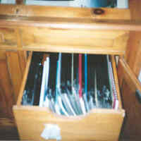 - en-CA This room has been at capacity for several years. Drawers designed for clipping storage now needed for books and reports as cupboards above have been filled.