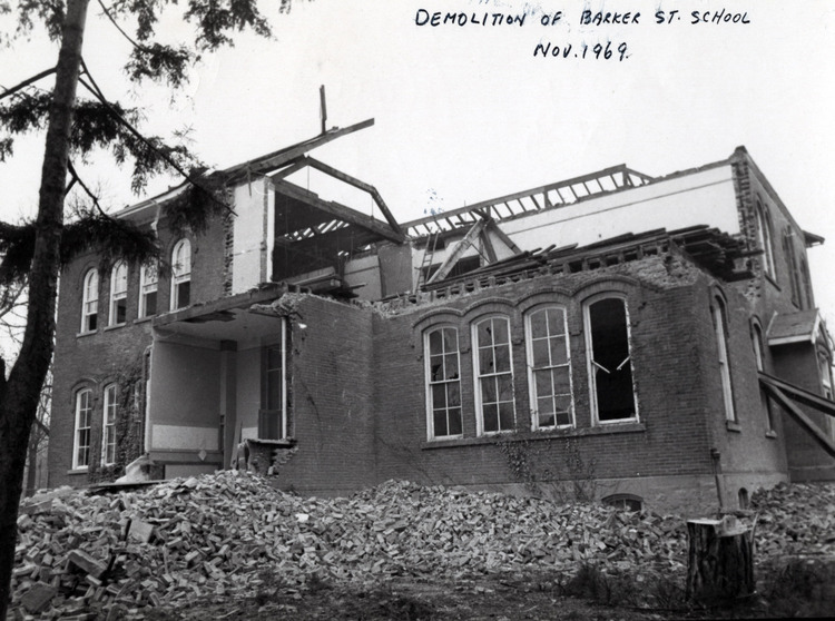 - en-CA The Barker Street School was demolished the first two weeks on November 1969.