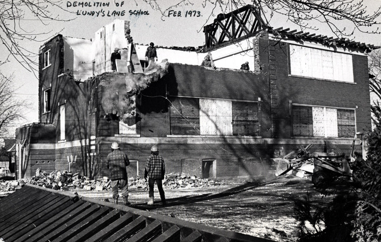 - en-CA Demolition of school began Friday, February 9, 1973. Work was done by R. Collee Wrecking Company.