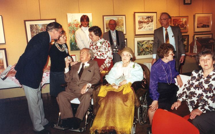 - en-CA George Seibel (in the wheelchair) at his book launch. Book was published in commemoration of the 200th anniversary of Portage Rd.
