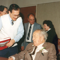 - en-CA George Seibel autographing his book in the lobby of the Victoria Avenue library.