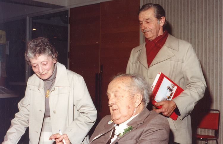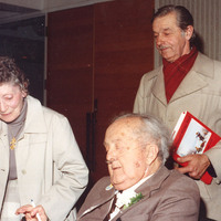 - en-CA George Seibel autographing his book in the lobby of the Victoria Avenue library.