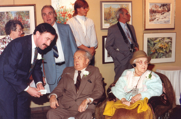 - en-CA Rob Nicholson, Member of Parliament talking to George Seibel and his mother, Mrs. William Seibel.