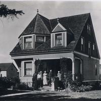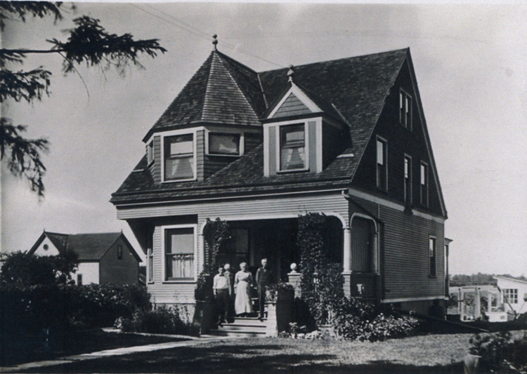 - en-CA Family standing in front of the Montgomery home.