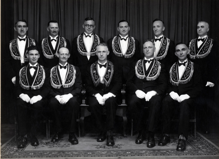 - en-CA W. A. Stuart, D.G.I.S., W. A. Sibbett, D.G.F.S., F. J. Hunt, D.G.J.W., F. N Pett, D.G.T., M. C. Groat, D.G.O.S., W. E. Hanna, D.G.S., G. T. Pirie, D.G.P., Alex Allan, D.G.S.W., A. M. Johnson, D.D.G.P., W. W. Grant, D.G.R.S, C. B. Mathews, D.G.H.P.