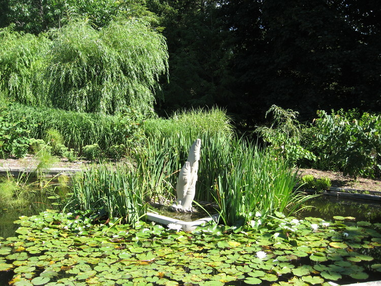 - en-CA A pond on the grounds of the Floral Showhouse.