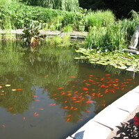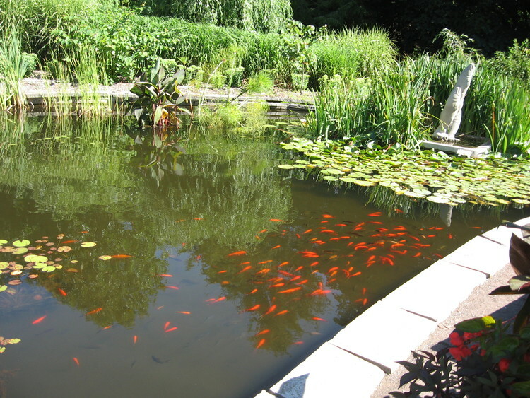 - en-CA A goldfish pond on the grounds of the Floral Showhouse.