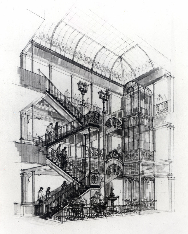 - en-CA Architectural drawing of an interior staircase in Maple Leaf Village.