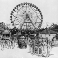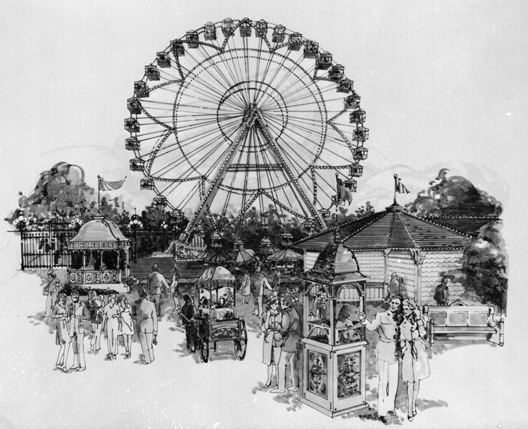 - en-CA Architectural drawing of the amusement park area of Maple Leaf Village.