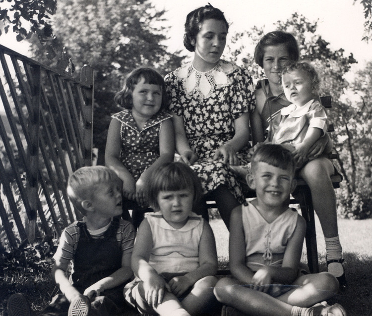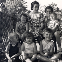 - en-CA Front Left to Right: Roderick Stewart, Winnifred Combe, Donald Combe Back Left to Right: Joyce Combe, Marjory Montgomery, Mildred Montgomery, David Stewart