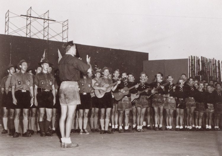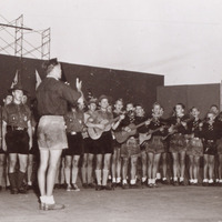 - en-CA The German contingent rehearses its arena display. From the book "Jamboree Souvenir Pictures".