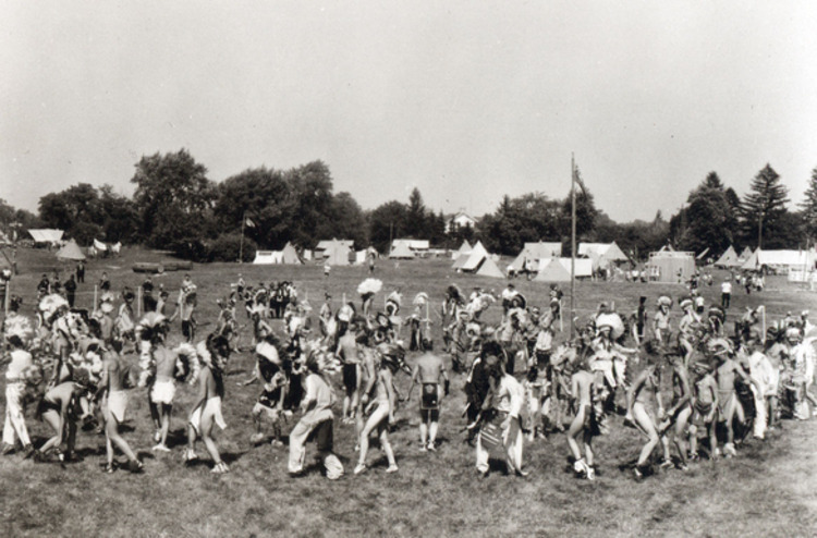 - en-CA Canadian scouts demonstrate Indian war dances. From the book "Jamboree Souvenir Pictures".
