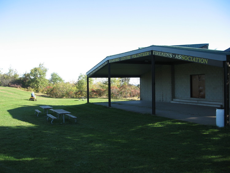 - en-CA Lawn being cut at Firemen's Park near the Stamford Centre Volunteer Firemen's Association Building.
