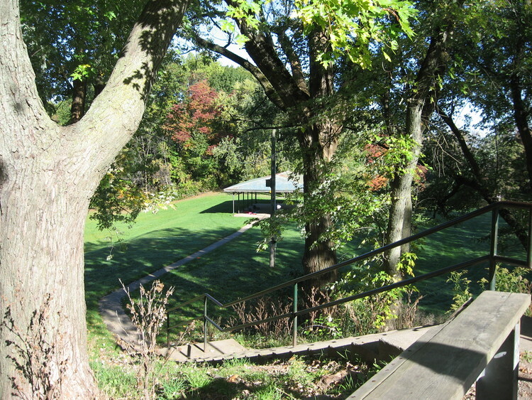 - en-CA Looking down from the parking lot to the pavilion at Fireman's Park.