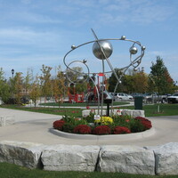 - en-CA The water molecule sculpture, with playground in the background at the Olympic Trail.