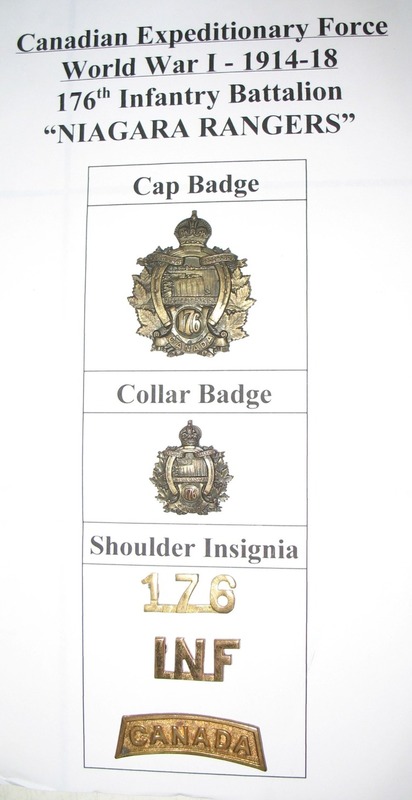 - Canadian Expeditionary Force World War I - 1914-18 176th Infantry Battalion "Niagara Rangers" Cap Badge, Collar Badge, Shoulder Insignia