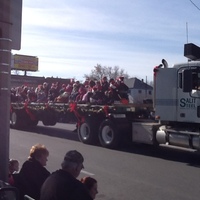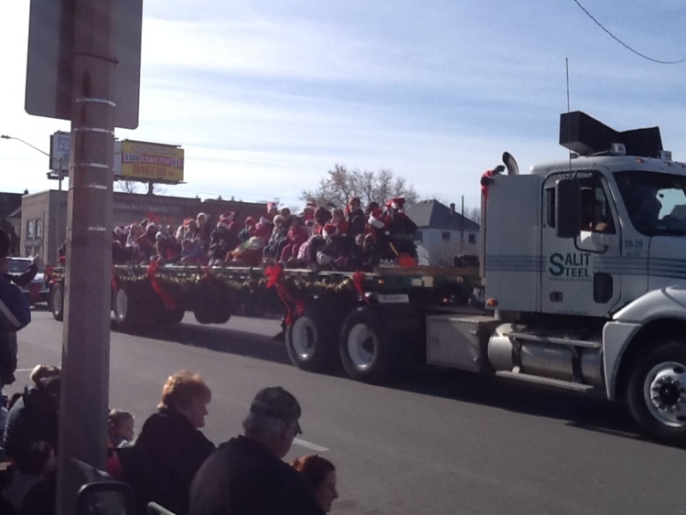 - en-CA Santa Claus parade Salt Steel float on Victoria Avenue looking south from the Niagara Falls Public Library.