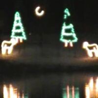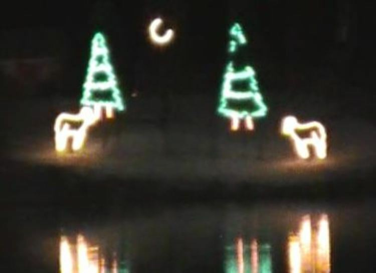 - en-CA Two rams head-butting in an animated lighting display at Dufferin Islands.