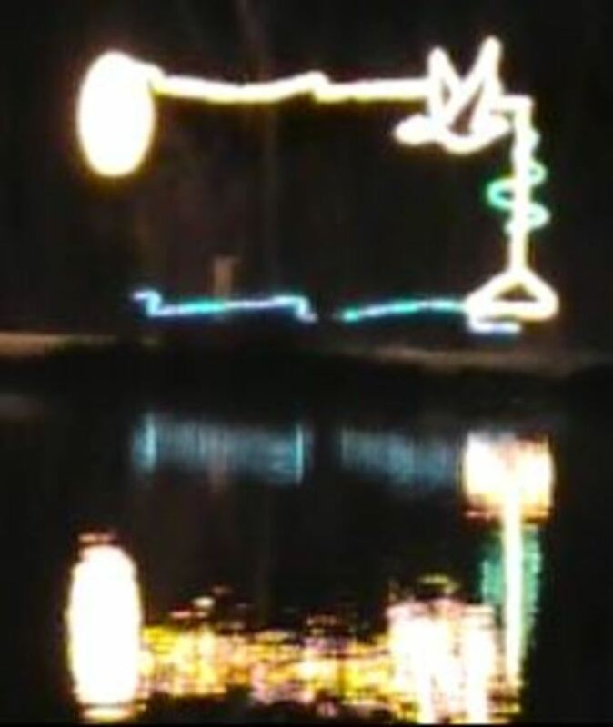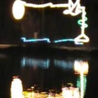 - en-CA Bird landing in water animated lighting display at Dufferin Islands.