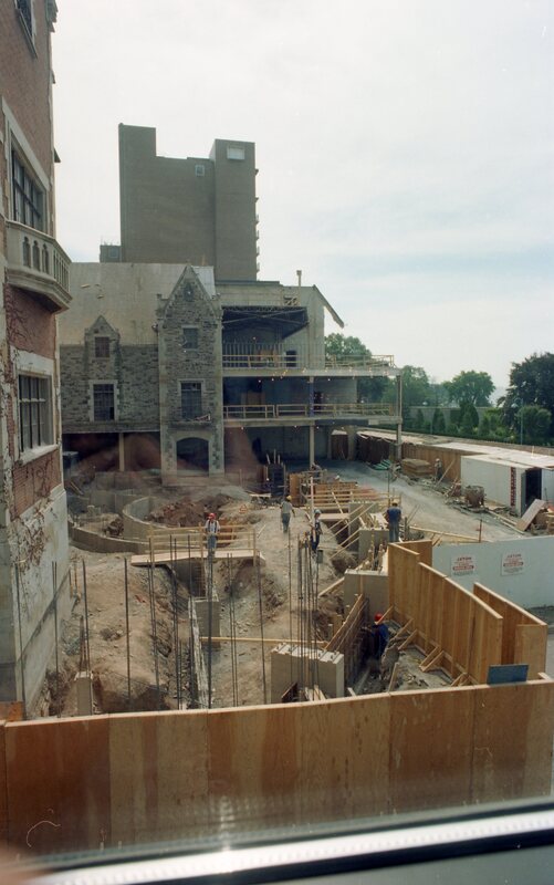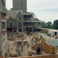 - Picture of worker standing in front of the construction site of the Casino in Maple Leaf Village.