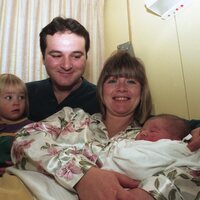 - Photos of a family with their toddler and new born baby at Greater Niagara General Hospital.