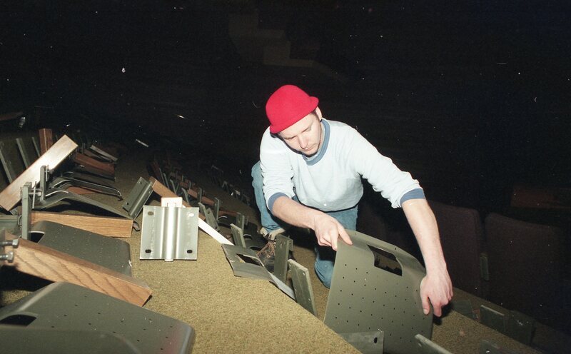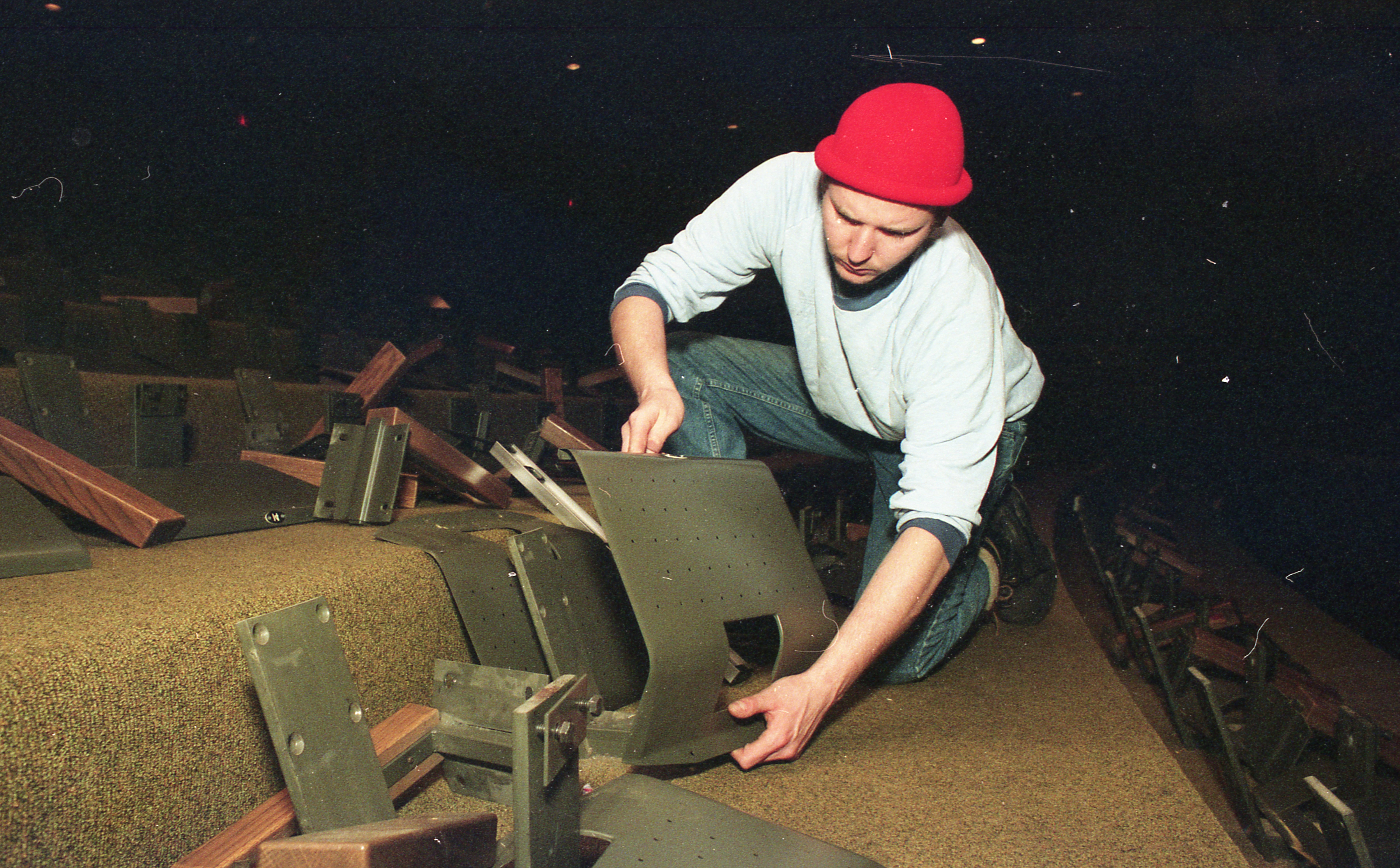 - Shots of workers at the Shaw Festival Theatre removing theatre seats to be sent off for refurbishing.