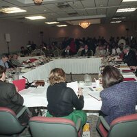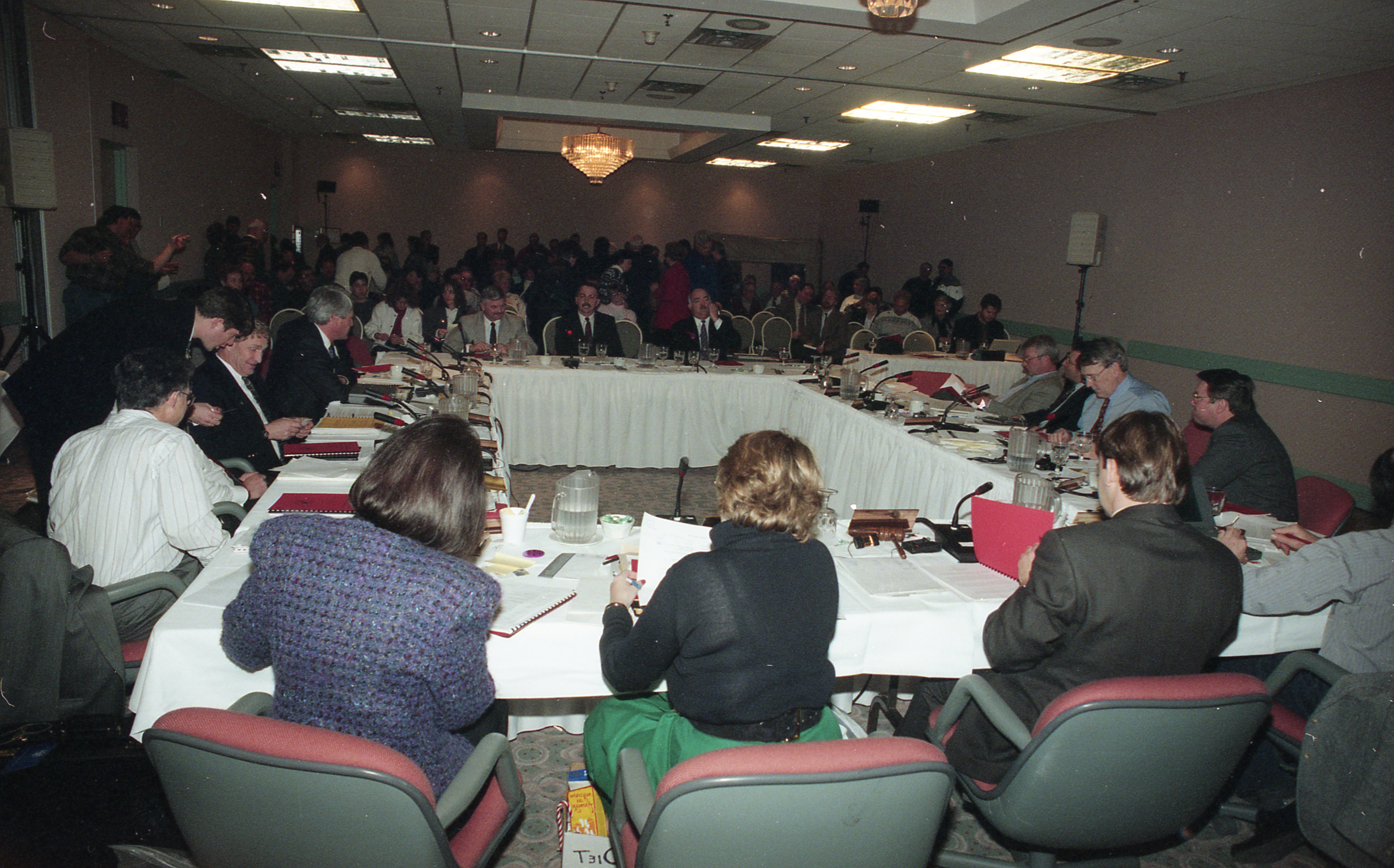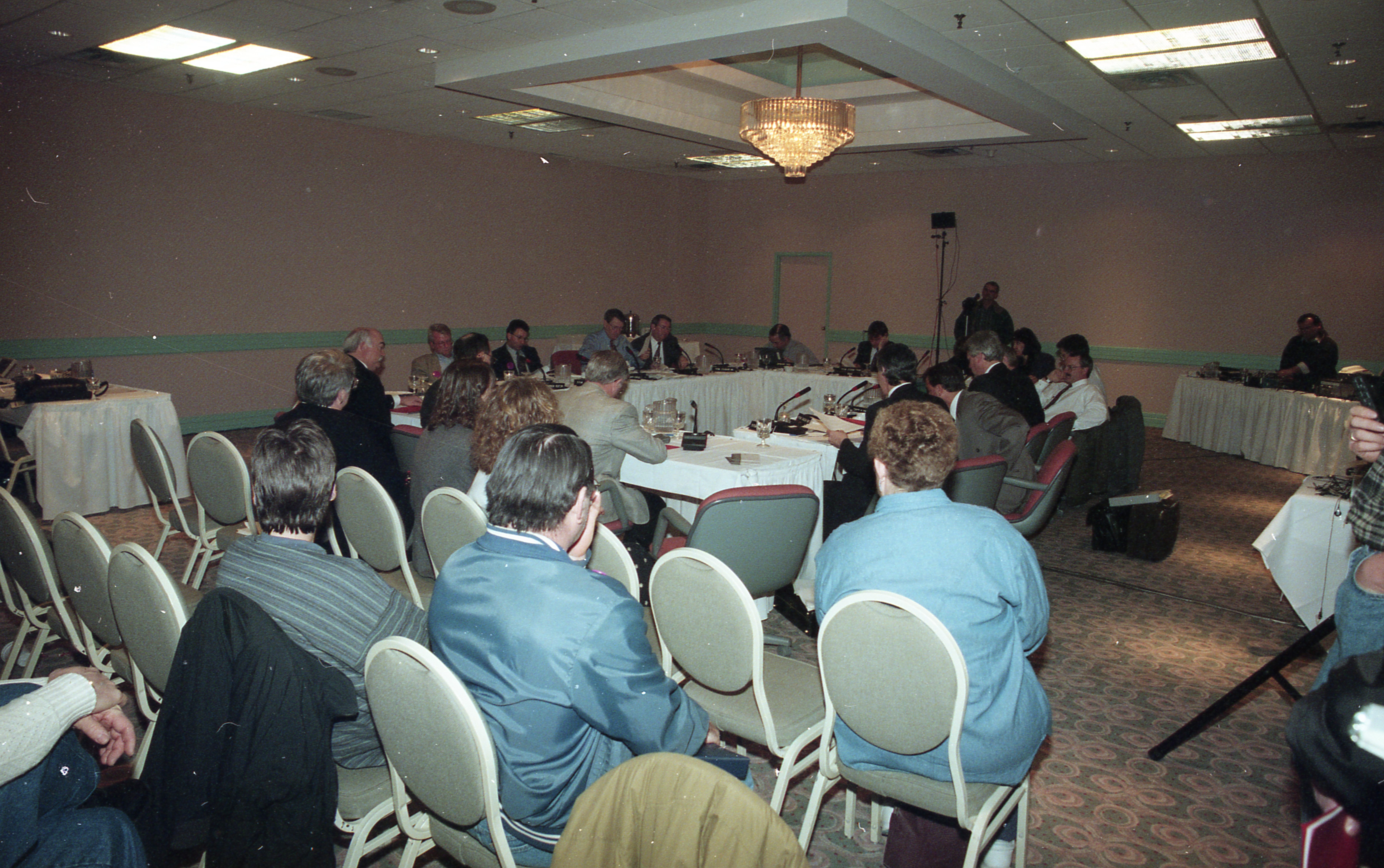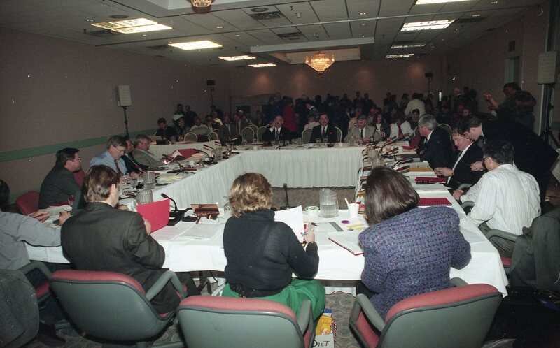 Hearings on Bill 26, the government's Omnibus Bill, go on all day in Hennepin Ballroom at the Sheraton Fallsview. A group called Niagara Women Against Bill 26 is speaking at 3:30 and at the end will sarcastically present a basket full of ‘Tsubouchi’s Diet’ - lots of tuna - to Bart Maves who is chairing the meeting.