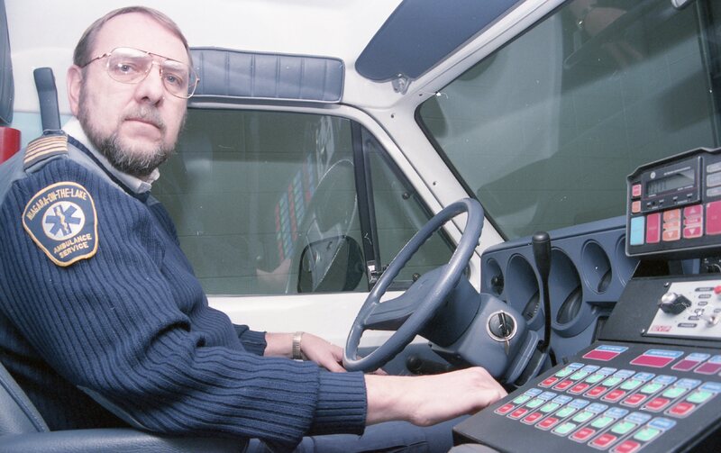 - Pictures of ambulance attendant Bob Kertcher showing a defibrillator at NOTL ambulance station. Manager Dick Hyatt of ambulance service is concerned NOTL firefighters won’t answer calls.